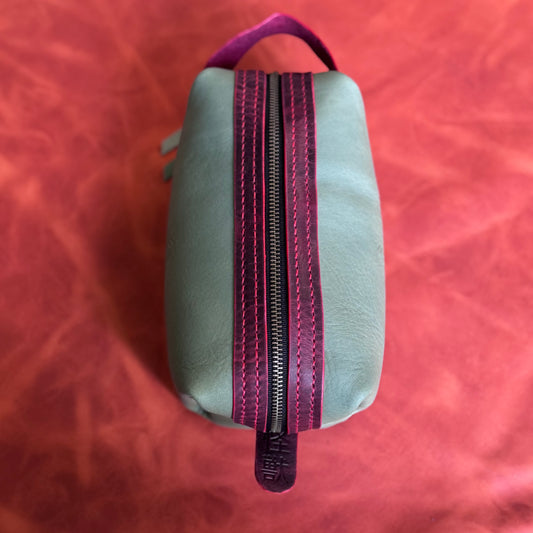 Kaiju Cut and Sew Baby Blue Horween Leather Dopp Kit with Japanese Fabric liner | Handmade in Austin, Texas