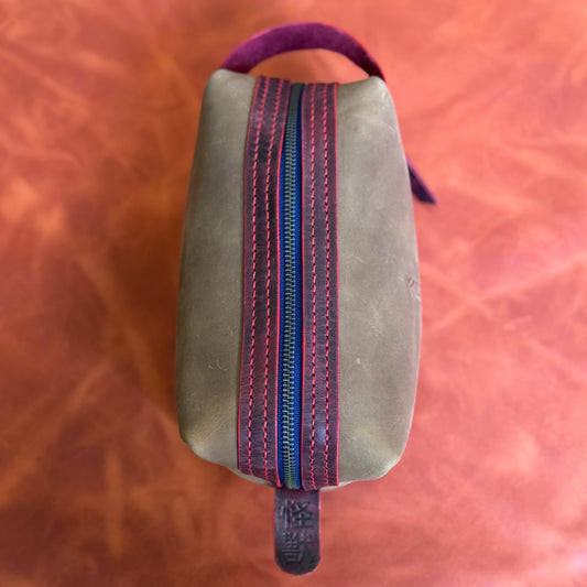 Kaiju Cut and Sew Olive Horween Leather Dopp Kit with Japanese Fabric liner | Handmade in Austin, Texas