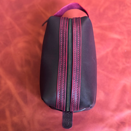 Kaiju Cut and Sew Fire Red Horween Leather Dopp Kit with Japanese Fabric liner | Handmade in Austin, Texas