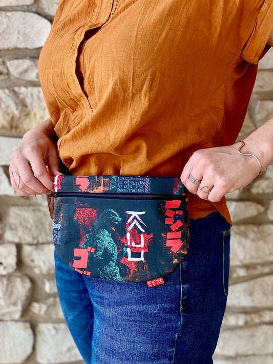 Kaiju Cut and Sew Gojira Fanny Pack with built in 6 card slot wallet