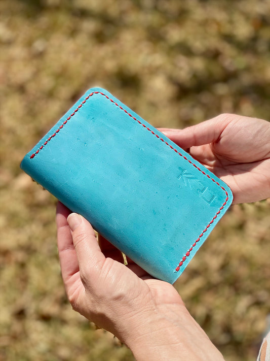 Kaiju Cut and Sew Field Notes/Passport Cover with Credit Card Pocket | Blue Bison Leather | Handmade in Austin, Texas