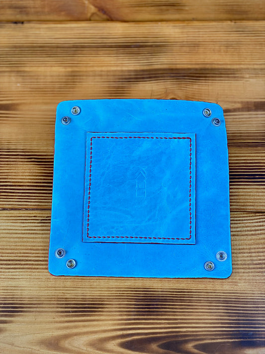 Kaiju Cut and Sew Handmade Leather Catch All | Dice Tray | Made in Austin, Texas | Baby Blue Horween Leather