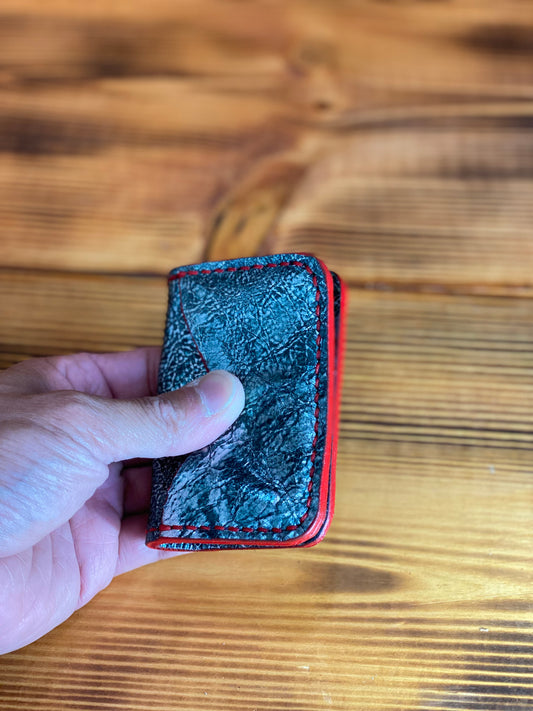 Kaiju Cut and Sew Gojira 3 Pocket Bifold Minimalist Wallet | Turquoise Metallic Horween Leather | Handmade in Austin, TX