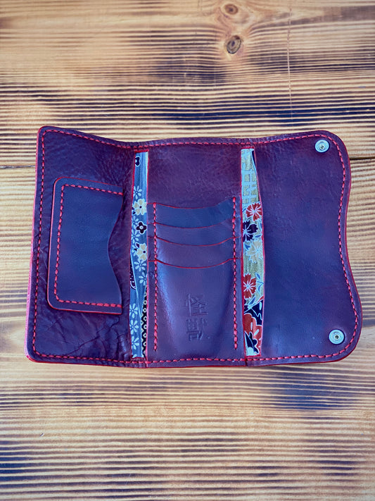 Kaiju Cut and Sew Fire Red Horween Leather Dopp Kit with Japanese Fabric liner | Handmade in Austin, Texas