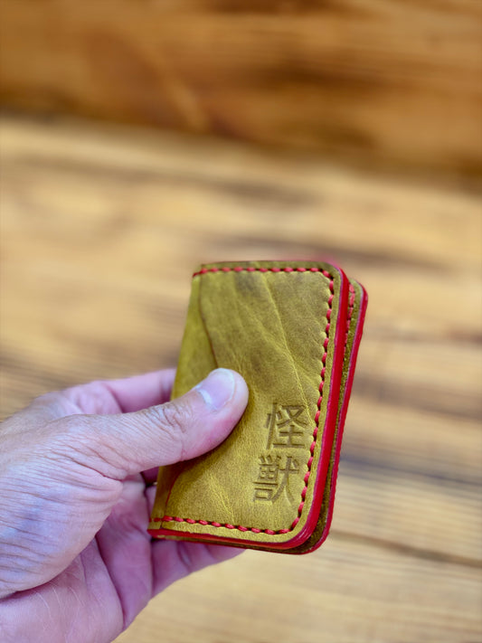 Kaiju Cut and Sew Gojira 3 Pocket Bifold Minimalist Wallet | Yellow Bison Leather | Handmade in Austin, TX