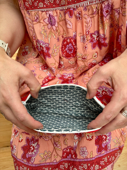 Kaiju Cut and Sew Fire Red Waves Kimono Fabric Pencil Pouch | Handmade in Austin, TX | Limited Edition