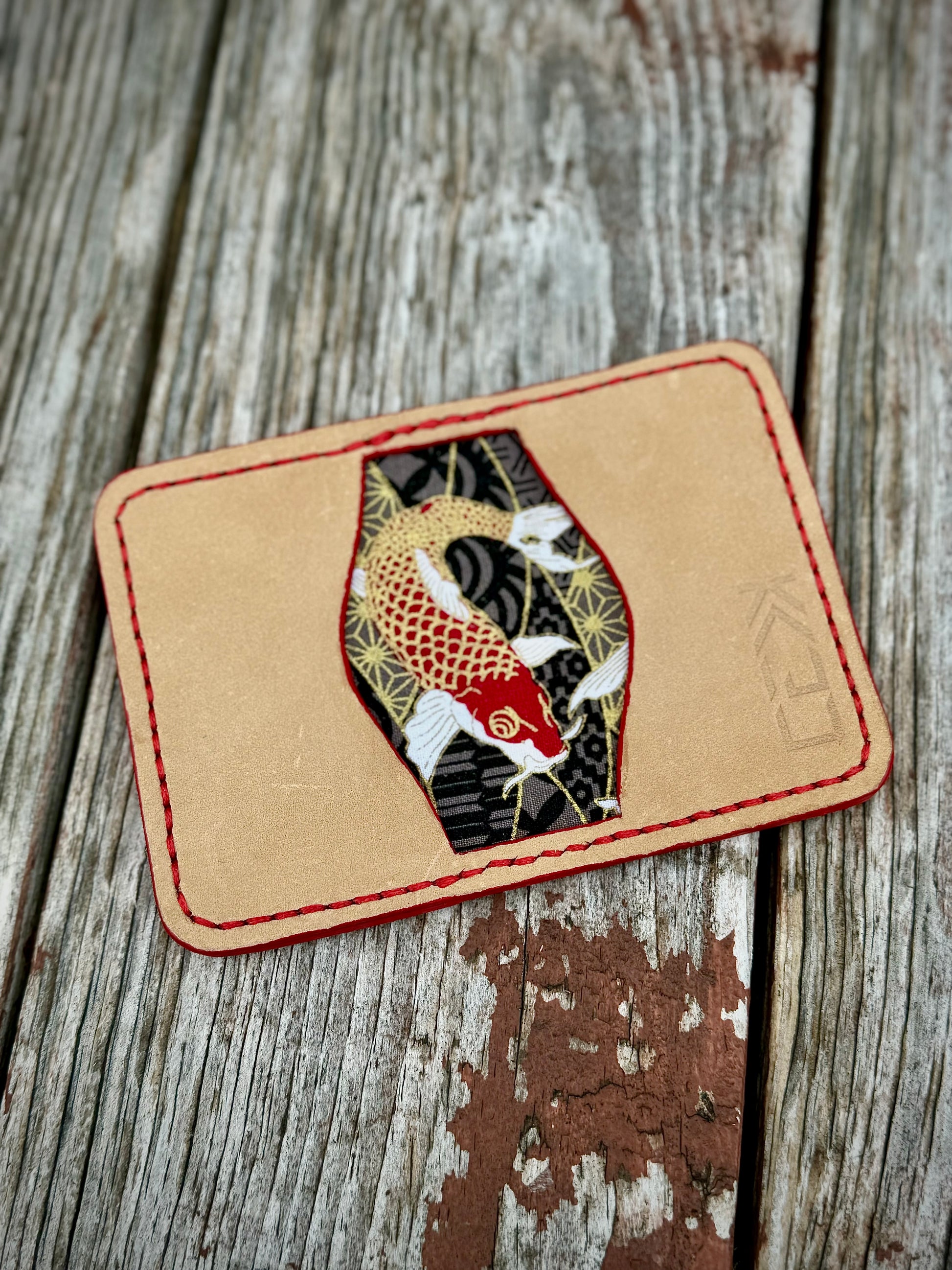 Kaiju Cut and Sew | Koi Fish |3 Pocket Bifold Minimalist Wallet | Tan Horween Leather | Handmade in Austin, TX