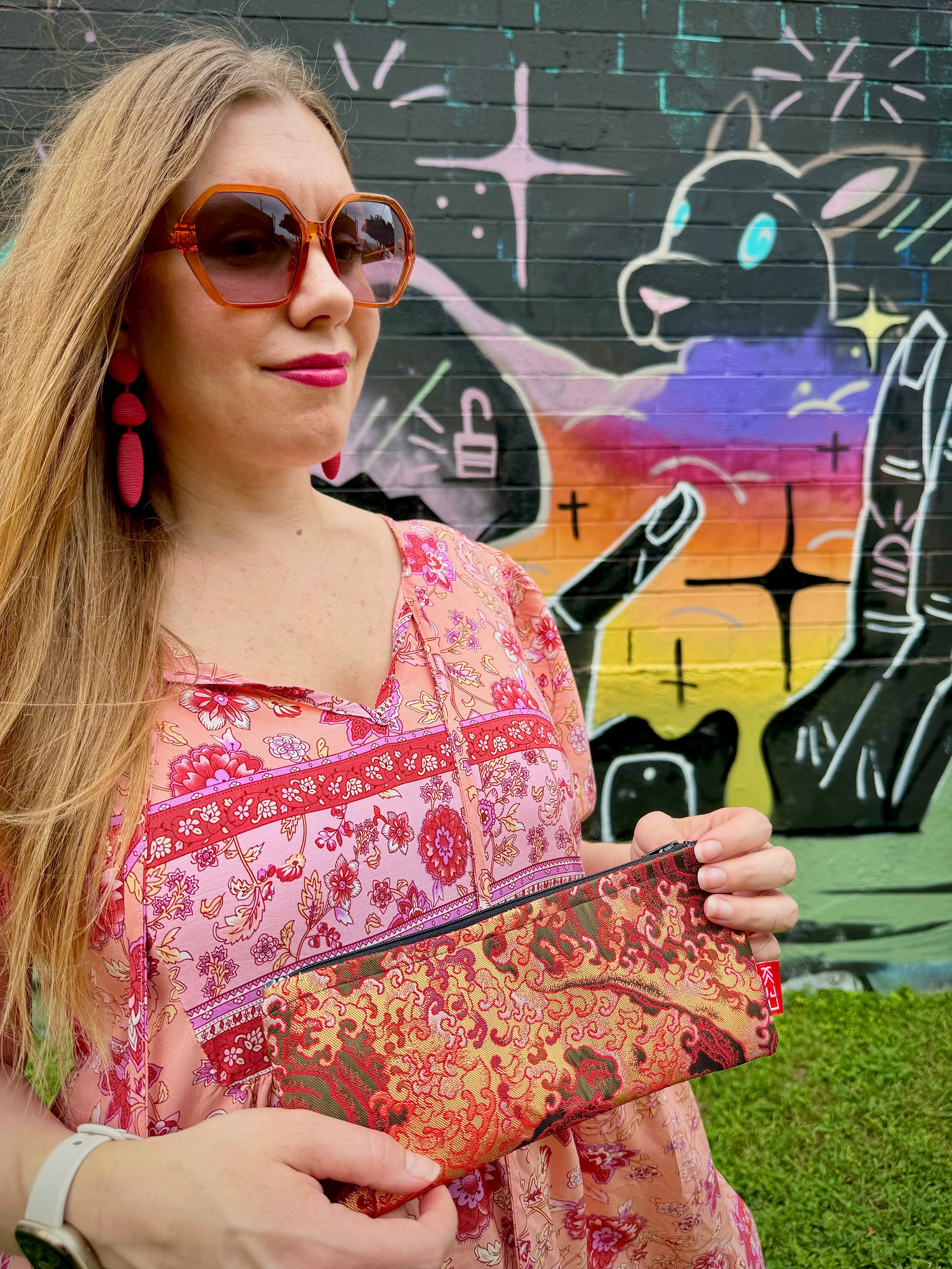 Kaiju Cut and Sew Fire Red Waves Kimono Fabric Pencil Pouch | Handmade in Austin, TX | Limited Edition
