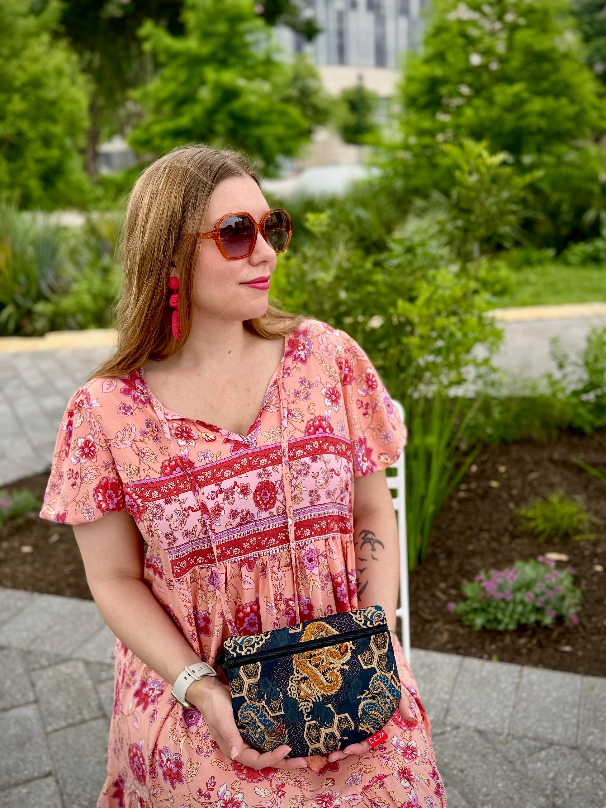 Kaiju Cut and Sew | Gold and Navy Dragons Kimono Fabric Fanny Pack with built in 6 card slot wallet