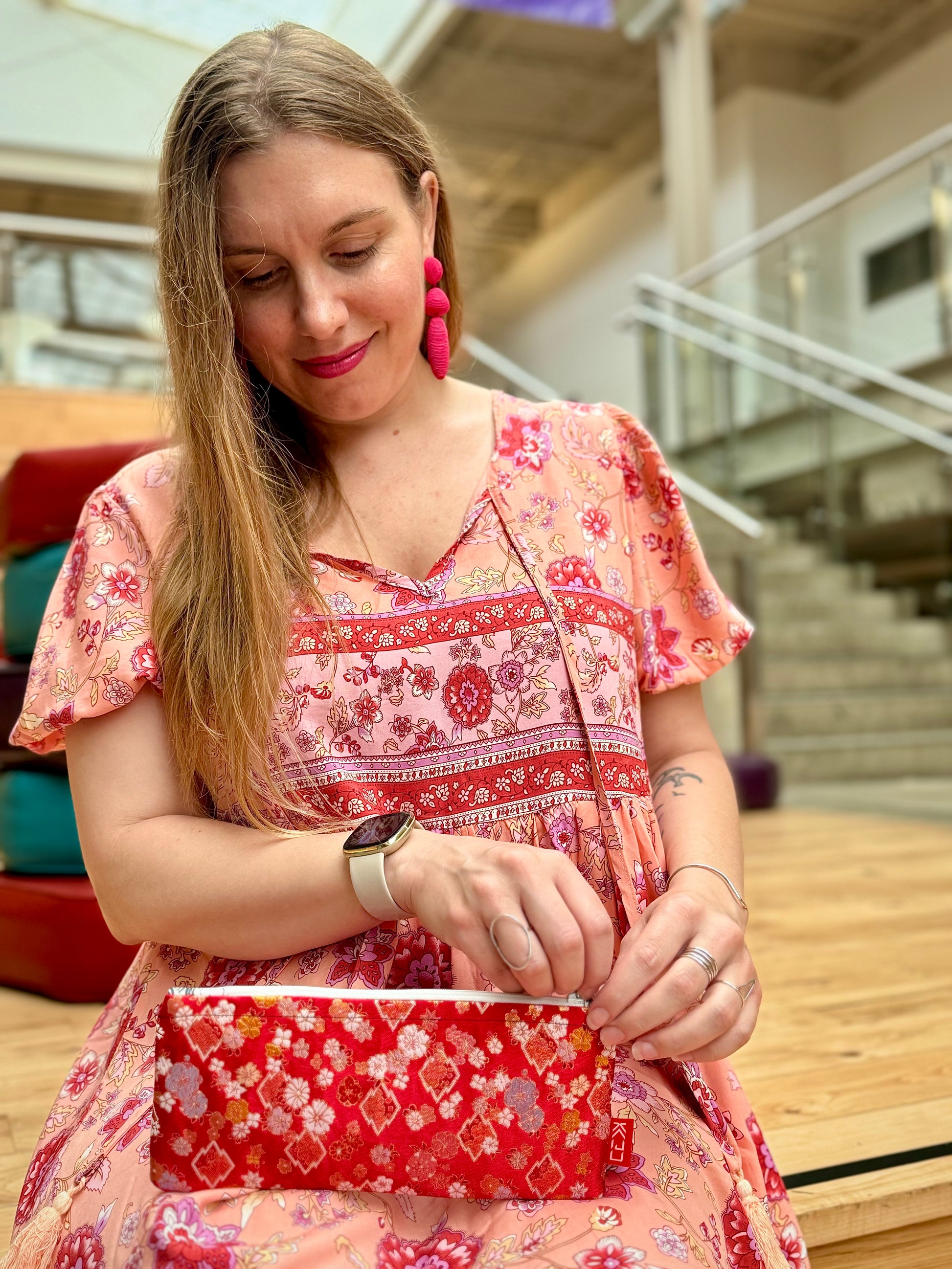 Kaiju Cut and Sew Red Kimono Fabric Pencil Pouch | Handmade in Austin, TX | Limited Edition
