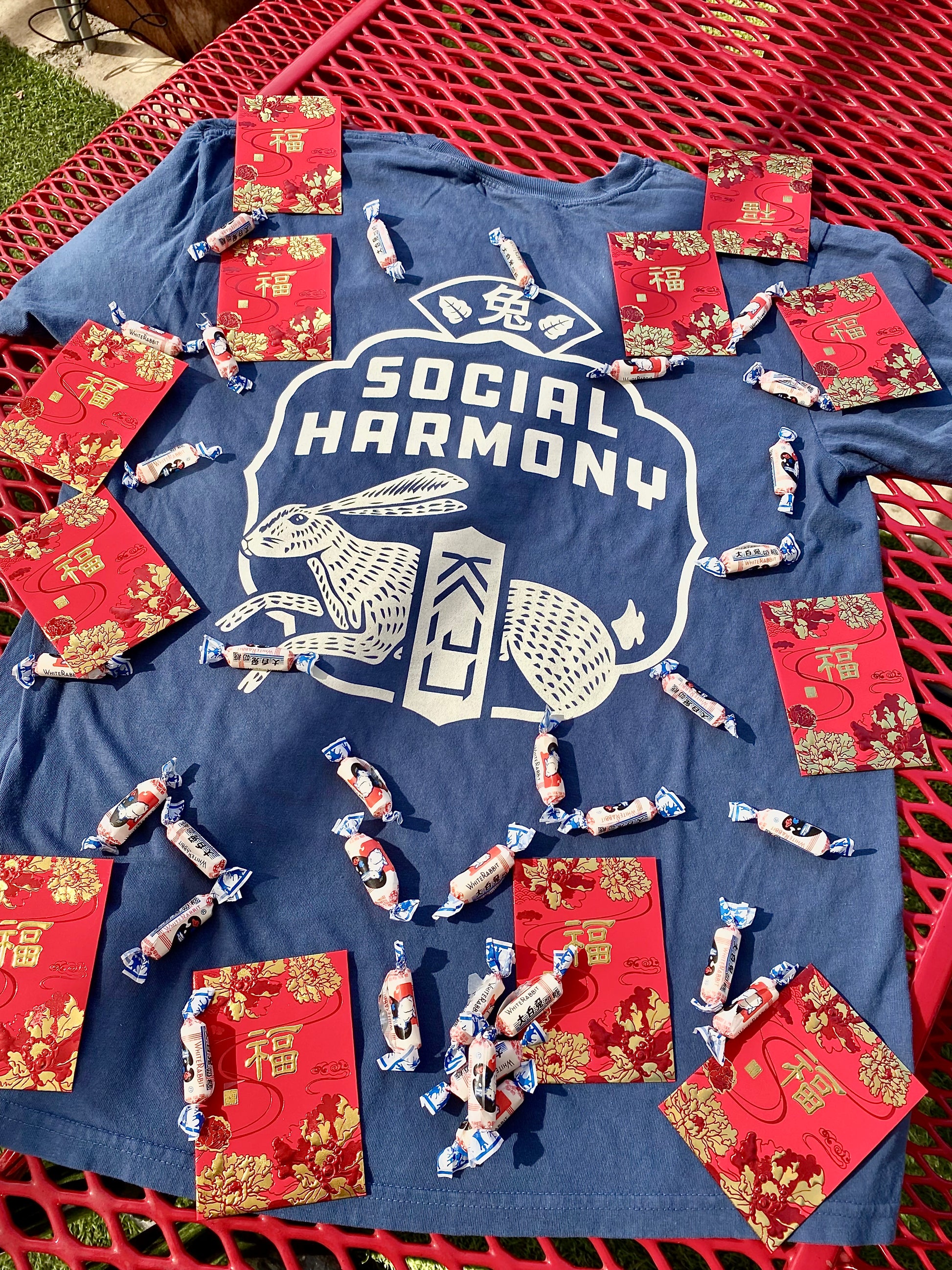 Kaiju Cut and Sew | Screen Printed | Unisex | Comfort Colors Navy | “Social Harmony ” T-Shirt