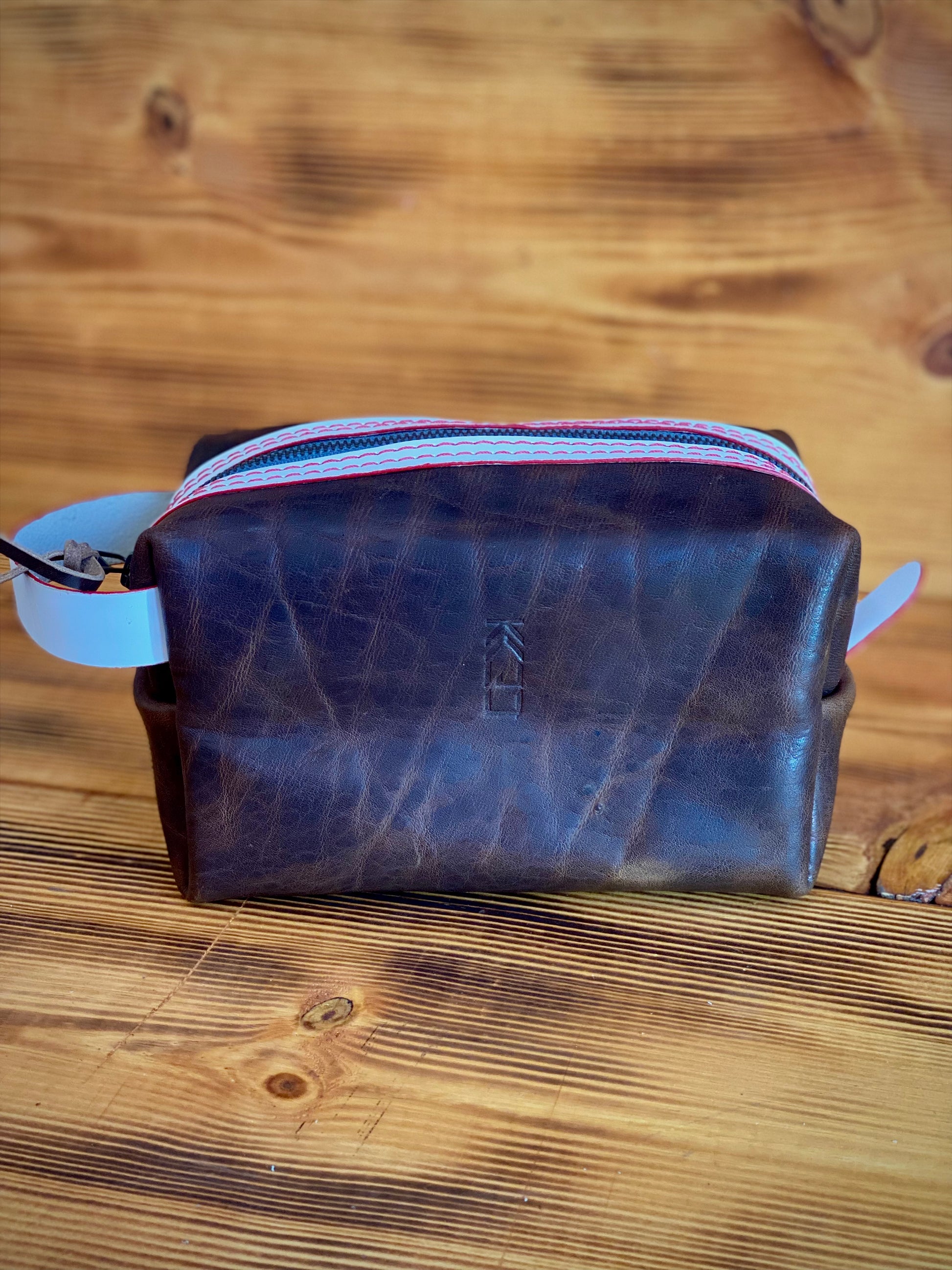 *Note* All of our leathers are created to wear/break in over time. Scratches and scars are inherent to this style of leather and add to the character and uniqueness of each Dopp Kit.
