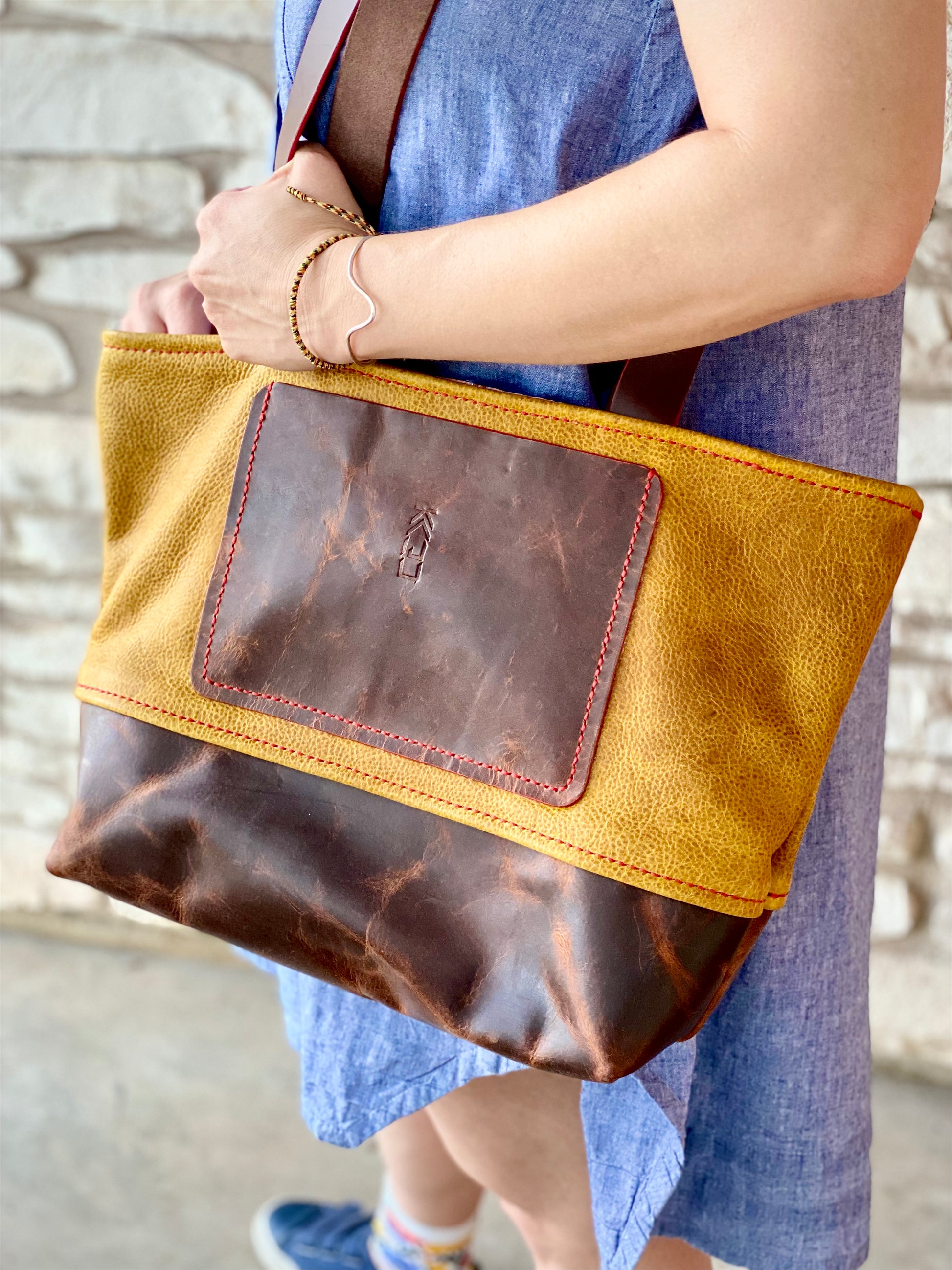 *Note* all of our leathers are created to wear/break in over time. Scratches and scars are inherent to this style of leather and add to the character and uniqueness of each tote bag.