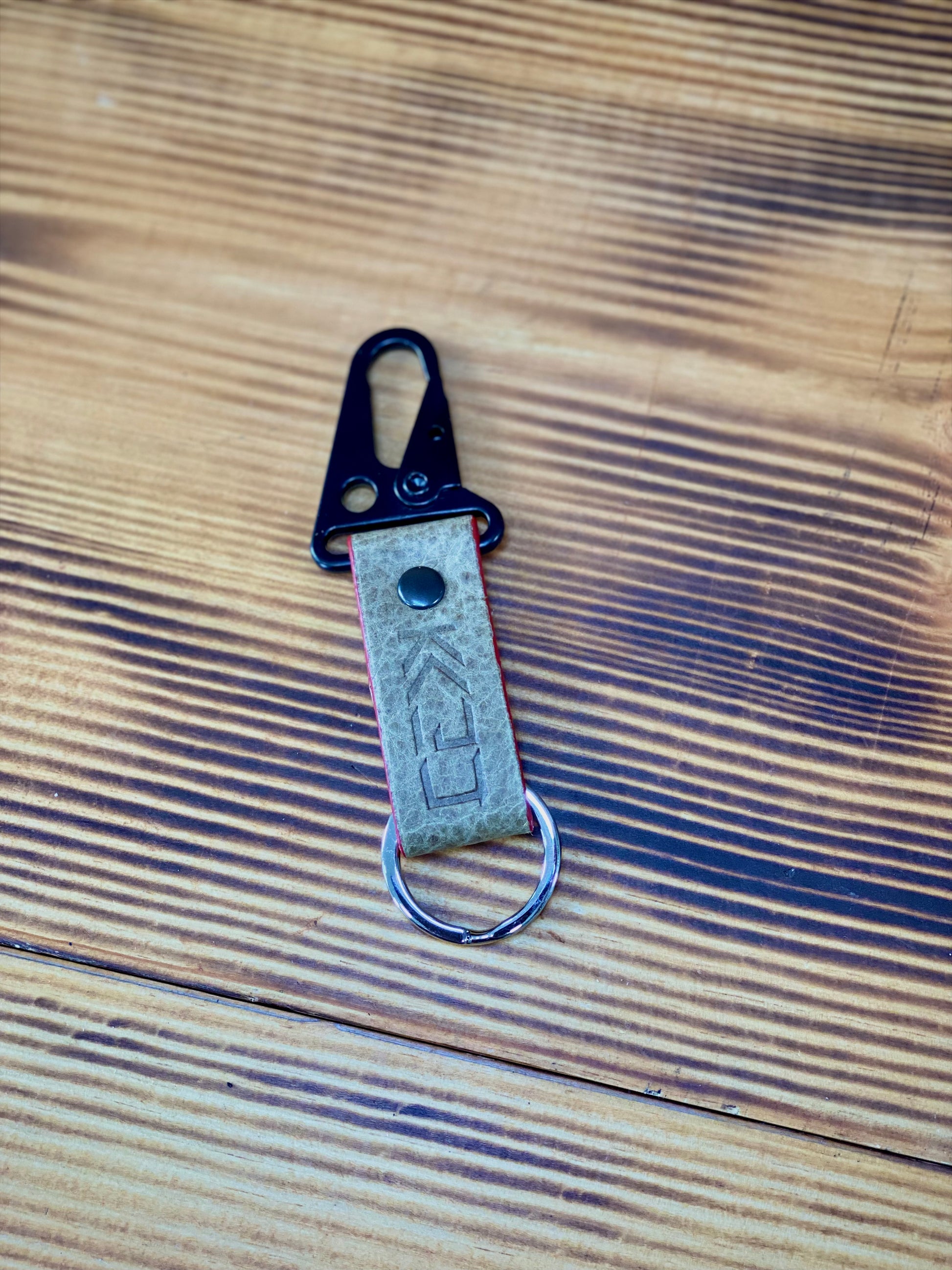 Kaiju Cut and Sew Khaki Bison Leather Key Fob, Key Chain