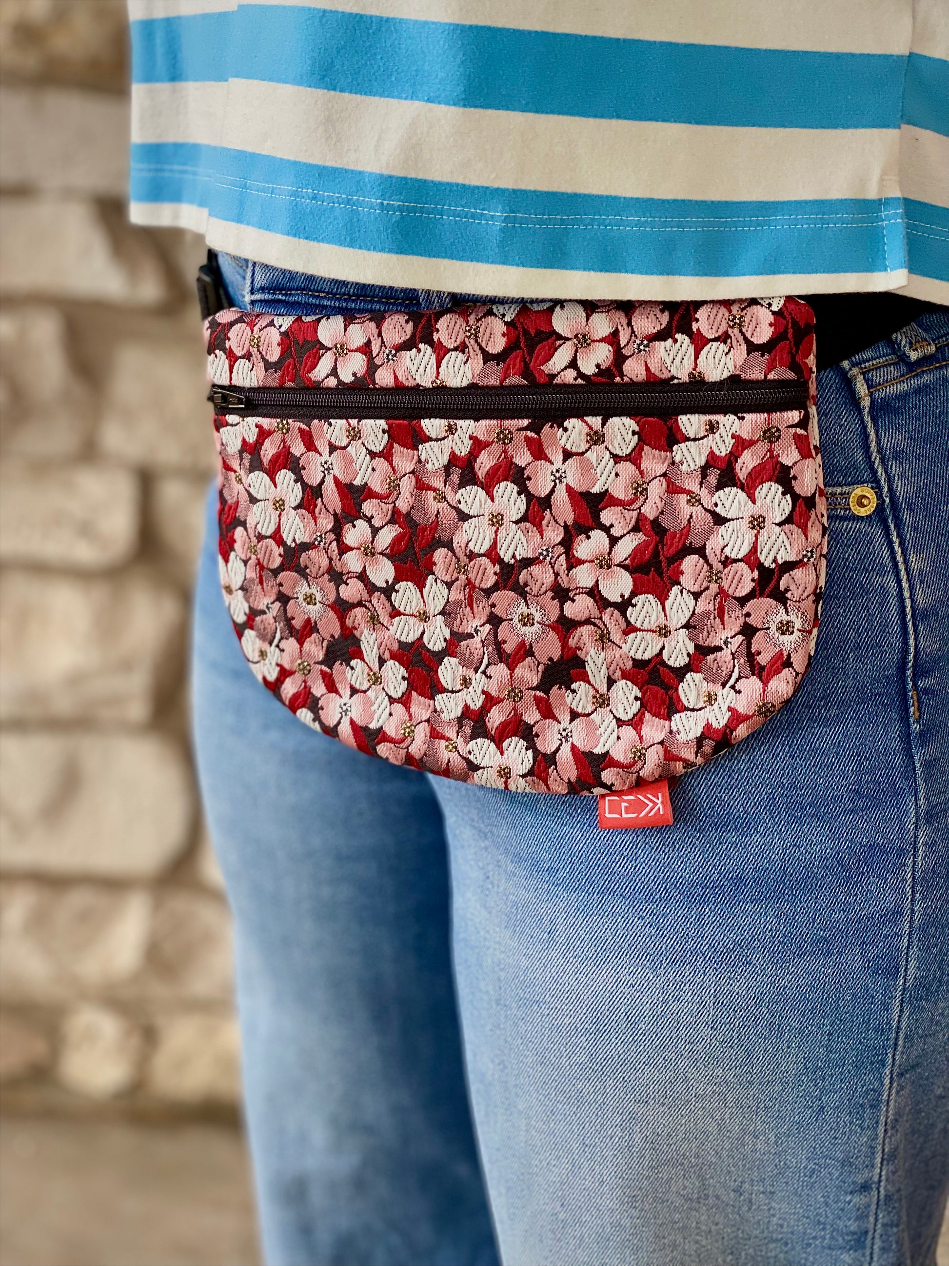 Kaiju Cut and Sew Floral Kimono Fanny Pack with built in 6 card slot wallet