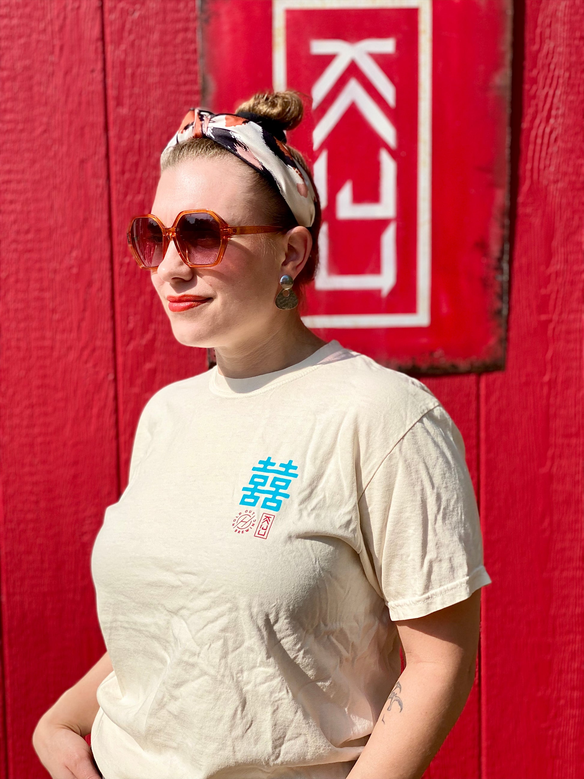 Kaiju Cut and Sew Screen Printed | Unisex | Comfort Colors Ivory | Kaiju Cut and Sew + Holdout Brewing Collaboration | “Double Happiness” T-Shirt