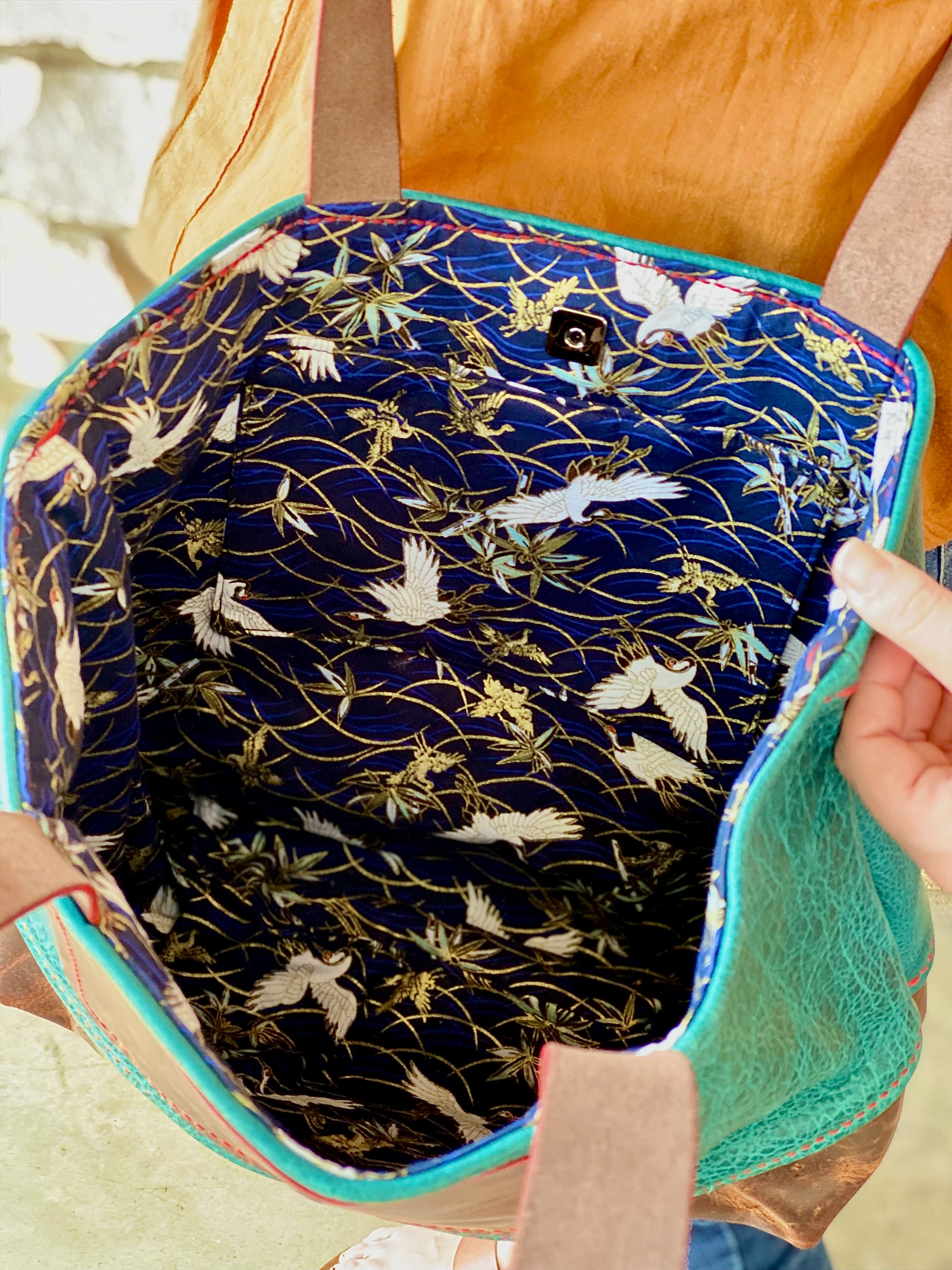 Kaiju Cut and Sew Large Tote Bag | Cranes Japanese Fabric Interior | Handmade in Austin, Texas