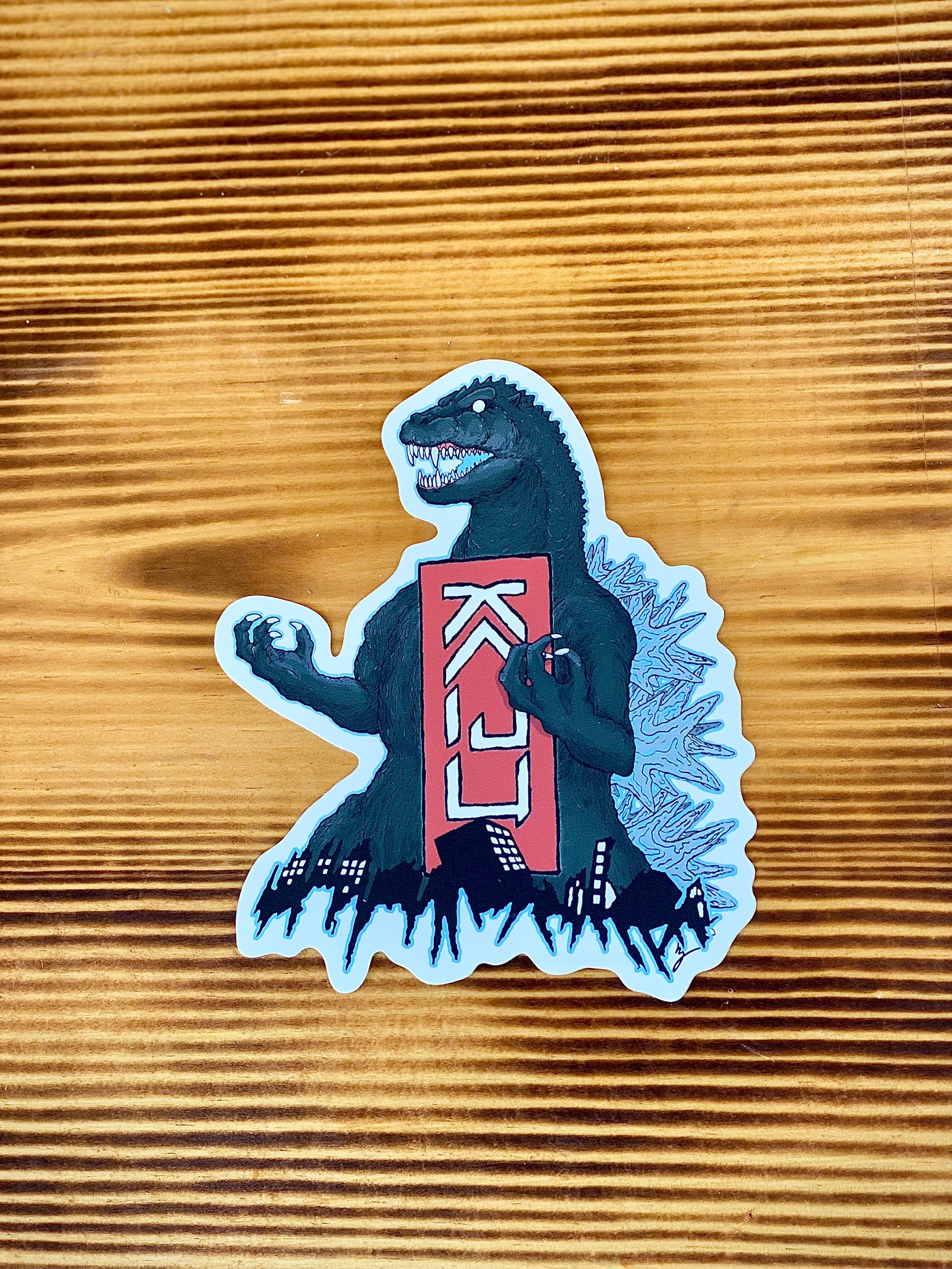 Kaiju Cut and Sew “Goji standing over city” Vinyl Sticker | Made in Austin, TX